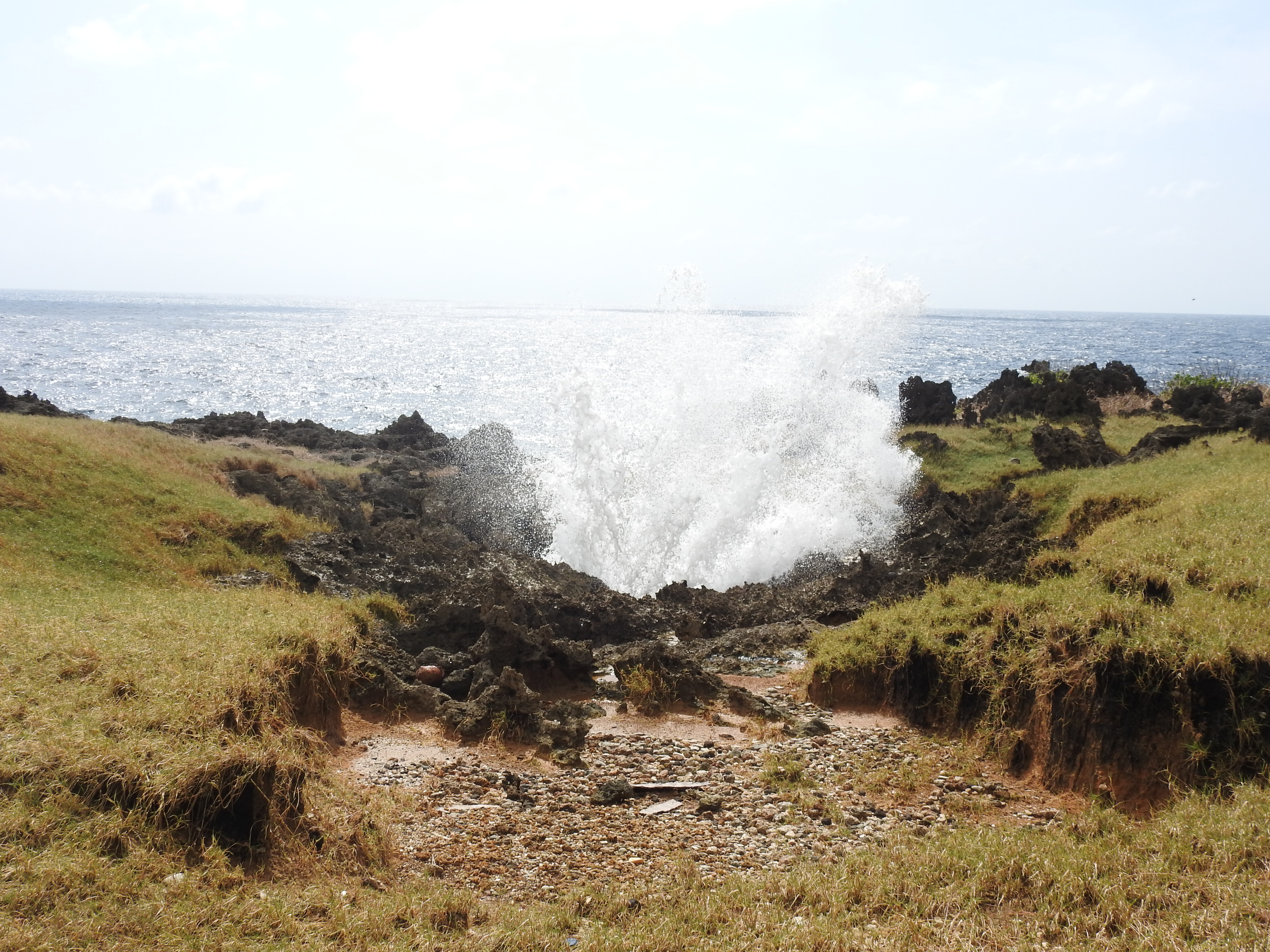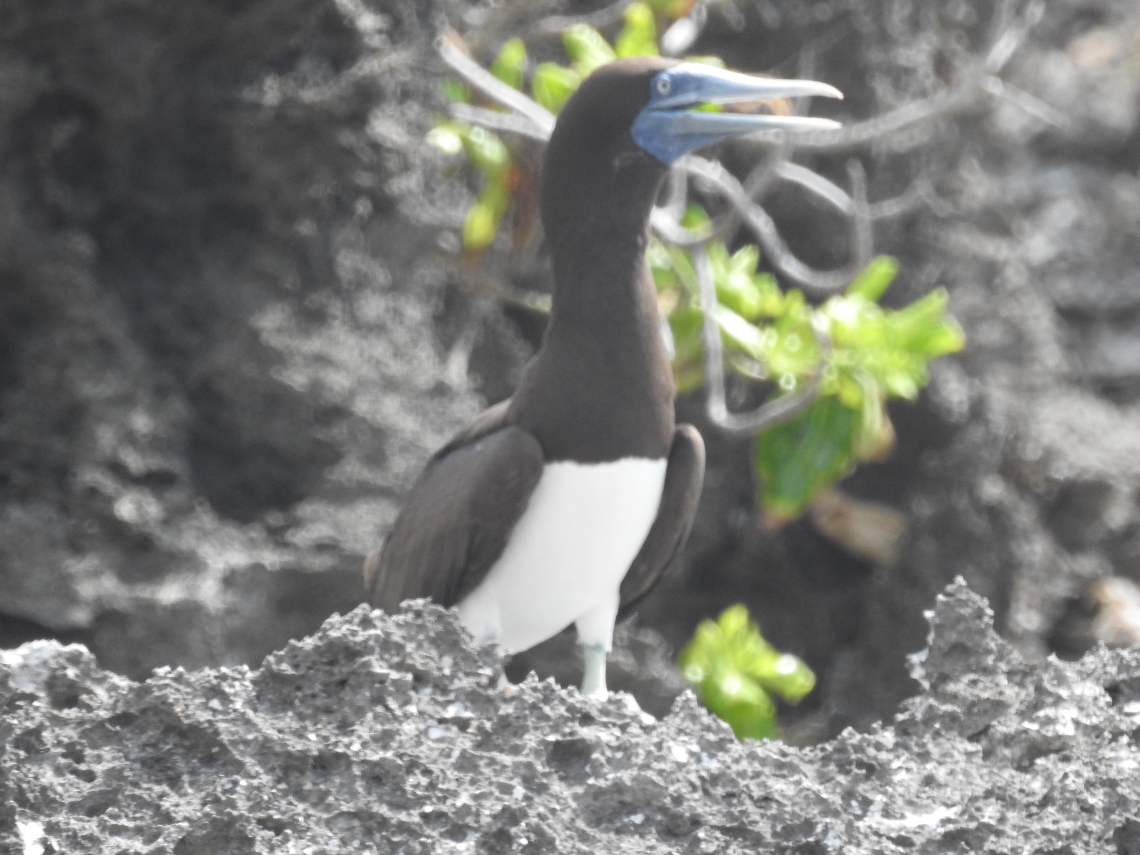 The Mar Chor Nui Nui Temple is the next stop on the agenda, with a walk down a track to some blowholes, with one working nicely in the gentle swells gushing air & water out. The larger blowhole next to it has some fish clinging to the rock cliff with a mouth sucker, they apparently eat the algae on the damp rock. They are hard to spot being well camouflaged & about 10 cm long, but there are few of them clinging on & wriggling around to change location. On the rugged rocks nearby we spot a number of Brown Booby nest sites, these bird nests are on the ground, often on the cliffs near the ocean.