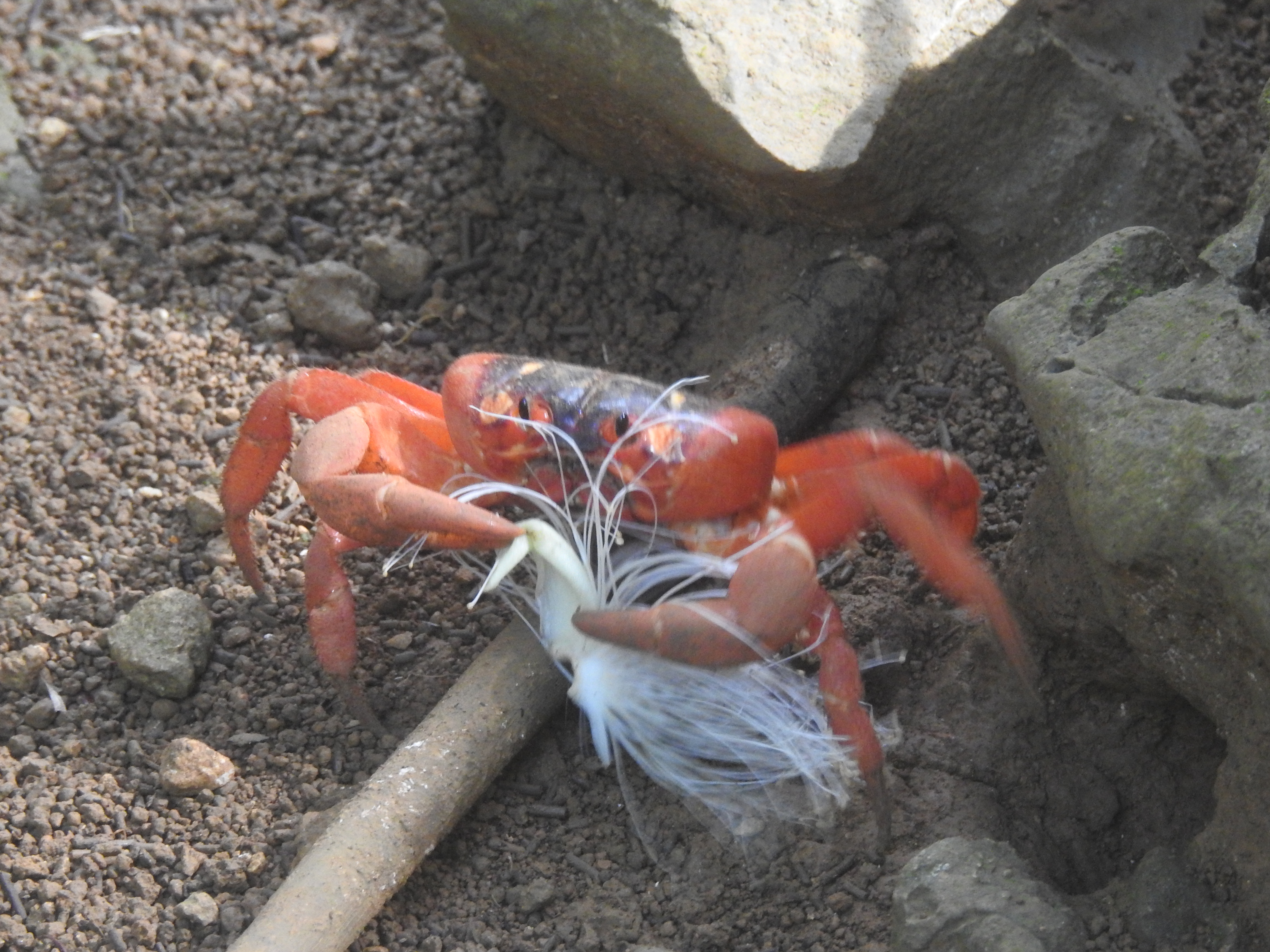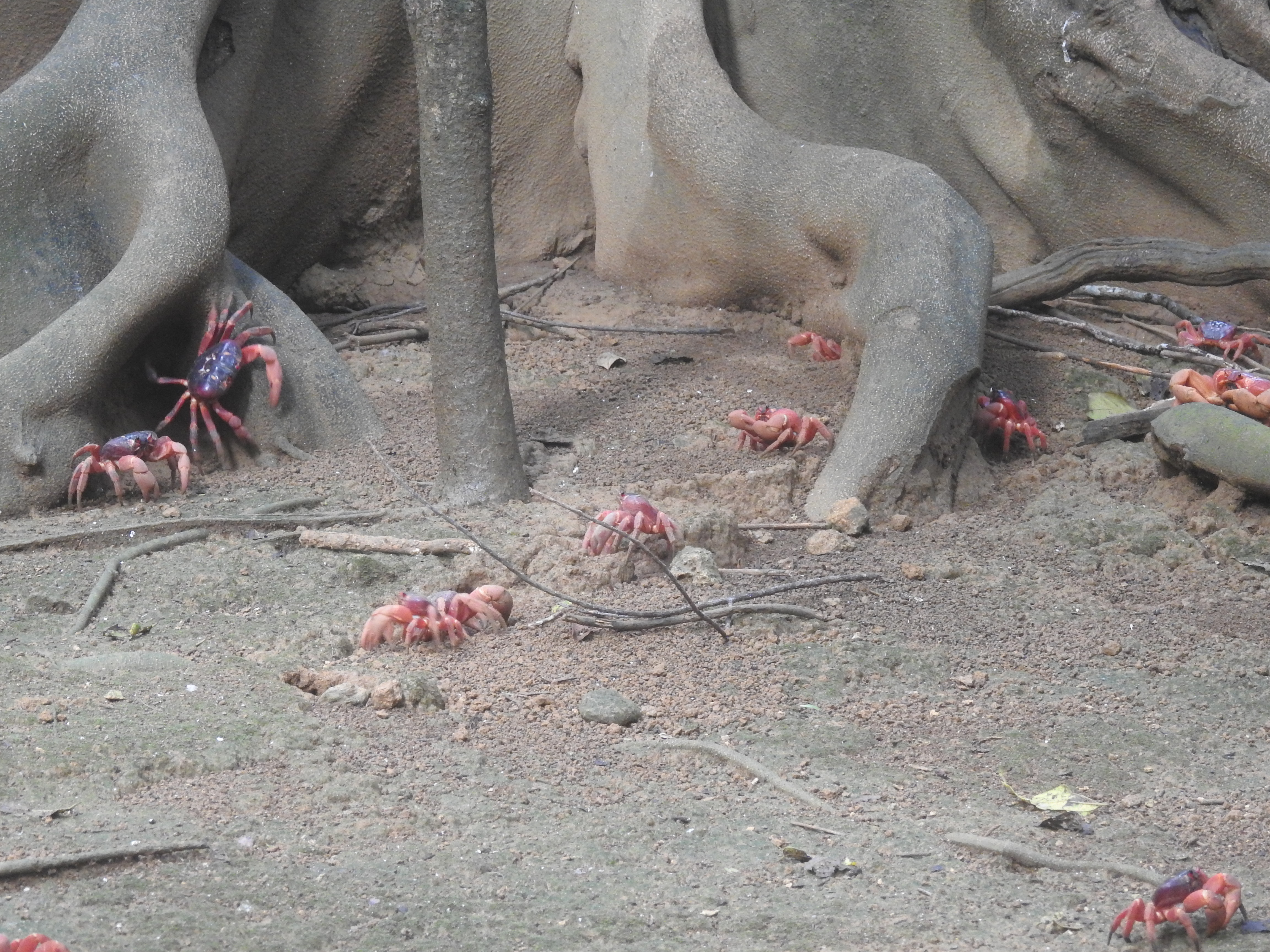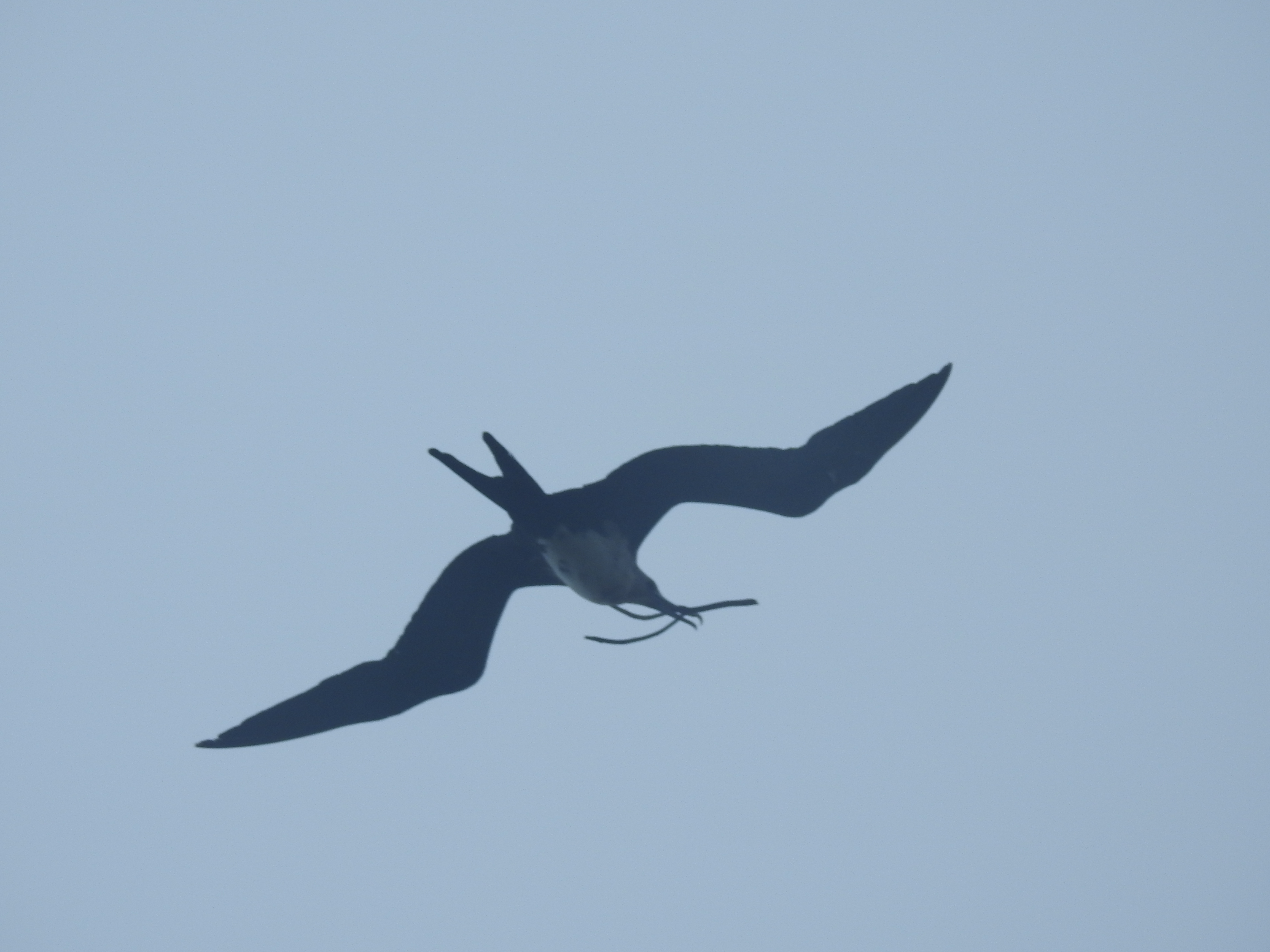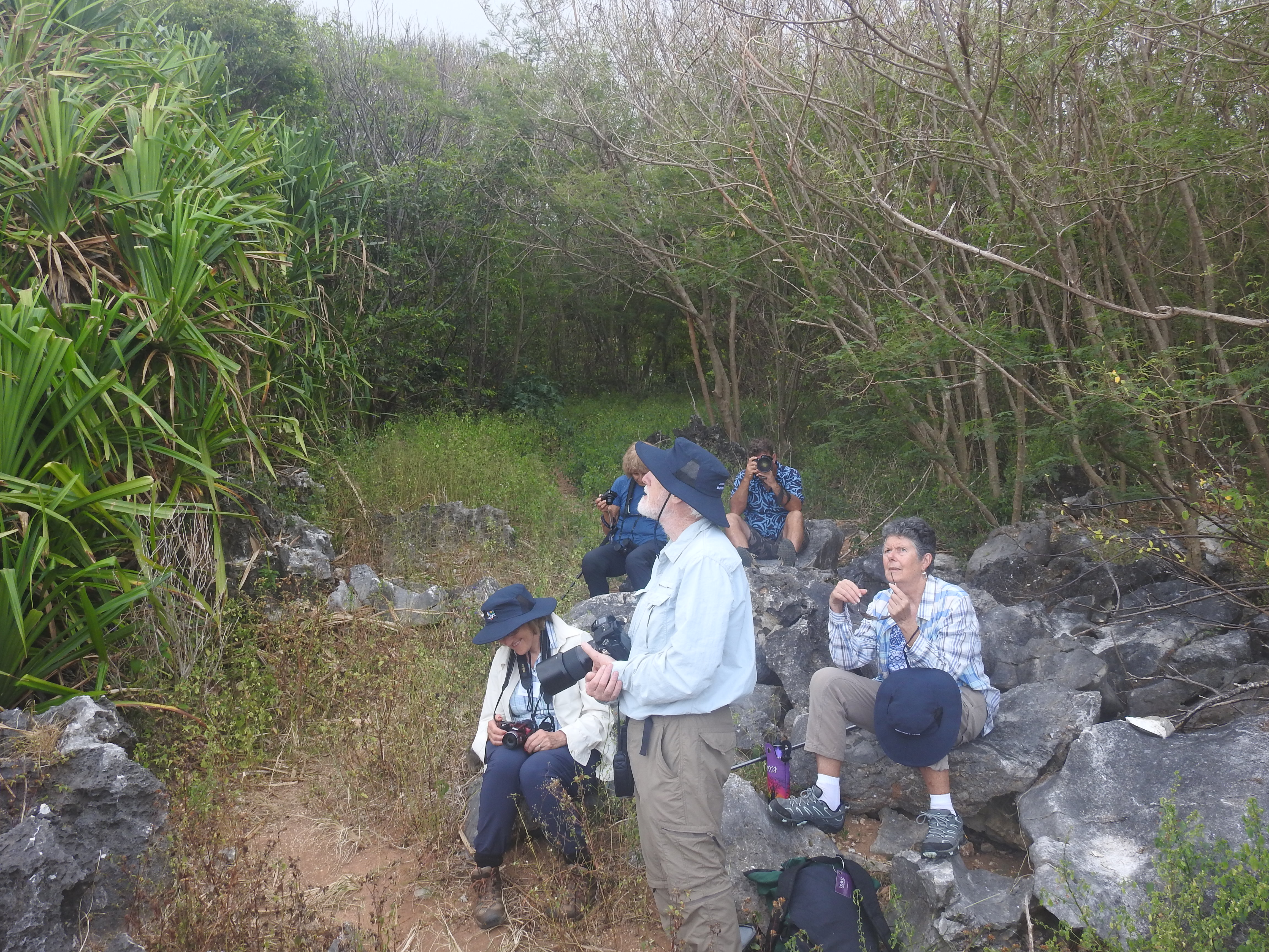 Chris is guiding us today in his small bus to look for the Abbotts Booby. After another good breakfast we head off. We stop at the National Park entrance just outside the road into the Detention Centre. We spot a nest with an adult Abbotts Booby in it as soon as we pull up, it is very high up in the tree & is a little difficult to see. We then set off into the forest down a track, the forest floor is very clean & there are thousands of red crabs around as there was a little rain overnight & lots have emerged from their burrows. We spot one red crab eating a flower that had fallen, unusual as they usually eat leaves. There are also a few large robber crabs that we spot as we get a little deeper into the jungle, one of them is an amazing blue colour. We spend a bit of time looking up for the Abbotts Booby nests & we spot a few before heading back out to the road.
