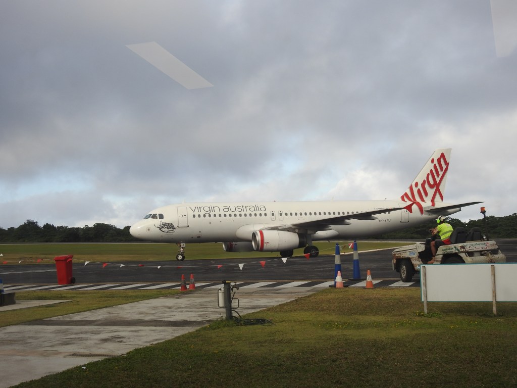 All our luggage is bundled into the cars & bus, with Tereza & I travelling with Lisa, our tour leader. We arrive at the airport in plenty of time & check our luggage in & collect our boarding passes. We sit in the airport lounge for around an hour waiting for security to open, which it does just after the incoming plane from Perth lands. We then line up & pass through security with no problem, we see Kerrie from the hardware store behind the x-ray machine scanning the baggage as it passes through. Only 20 of us lucky people can travel to Cocos-Keeling as that is all that they can accommodate, the others return to Perth & home.