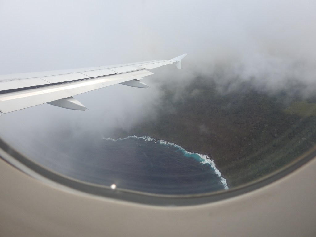 The flight to Cocos-Keeling Island is not full & the plane takes around 90 minutes to get there. The landing is a little bumpy as it is fairly windy on the island & the pilot stamps on the brakes as the runway is not that long. While in the plane Tereza manages to take a photo of “Christmas Island Airport” the sign that we were forbidden from photographing on our arrival. We taxi to the end of the runway then turn & taxi most of the way back up to the terminal.
