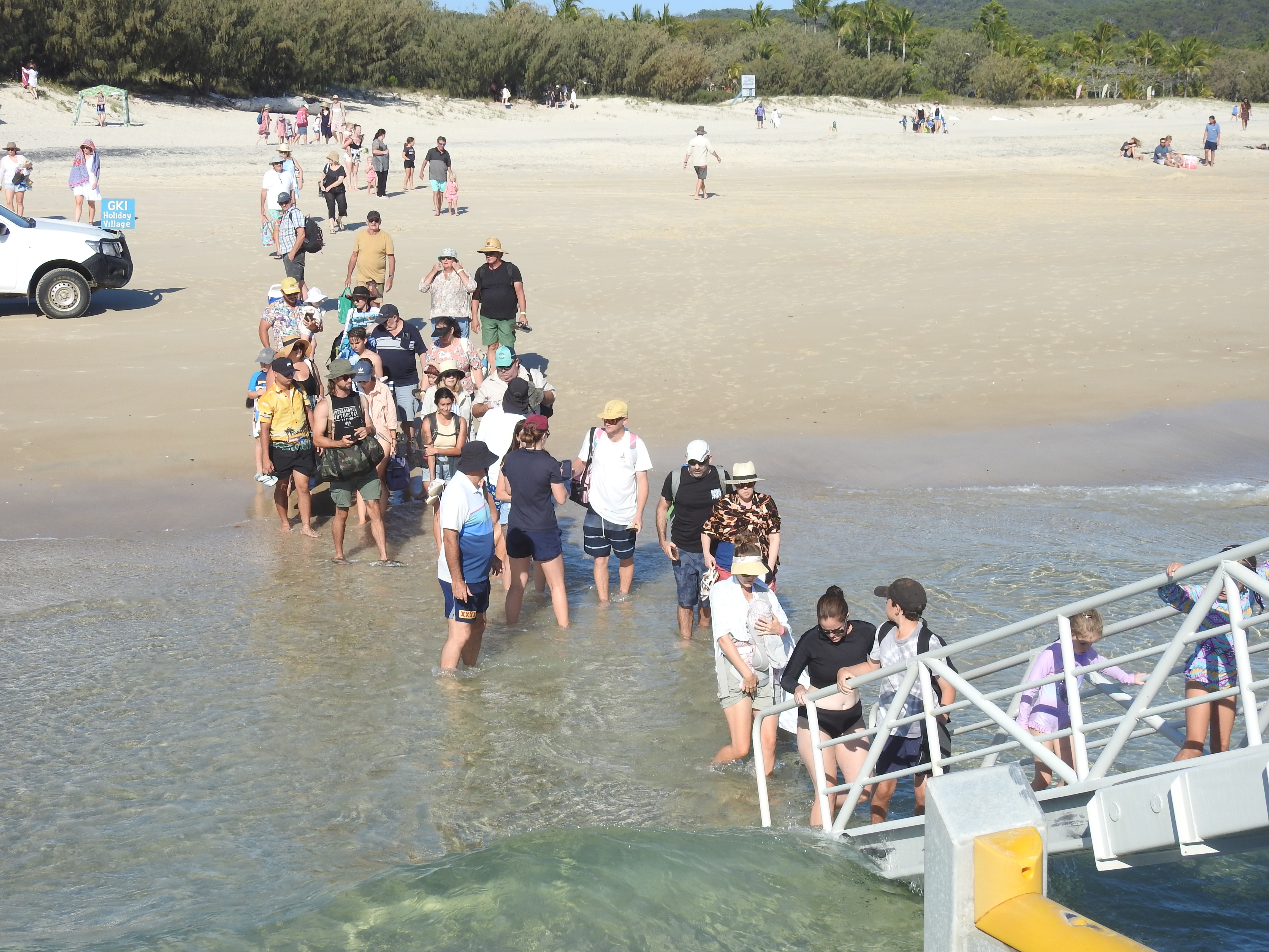 Our first stop is at the small settlement of Farmers Point on the northern tip of Facing Island. There are a number of cars on the beach & the barge noses into the beach & lowers the ramp onto the sand. There are some National Parks people, Maritime Services people & a group of volunteers in a small convoy of cars doing a beach clean-up before turtle nesting season starts.